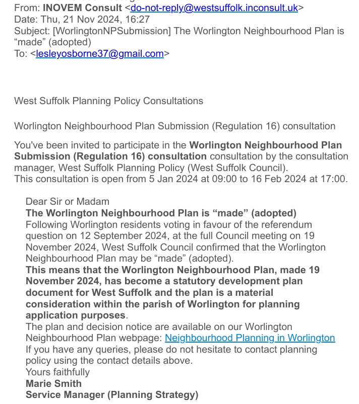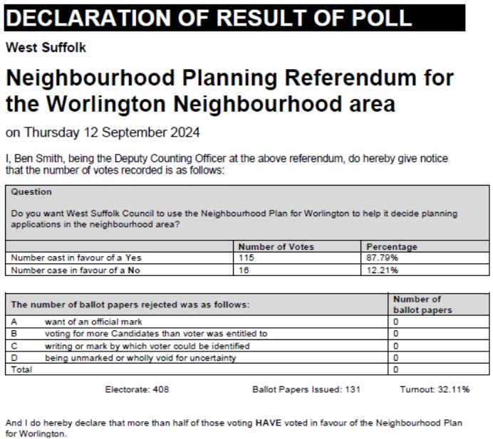 Worlington Neighbourhood Plan » Village Referendum & Adoption of Plan